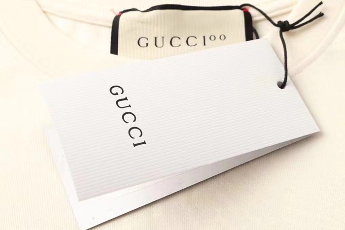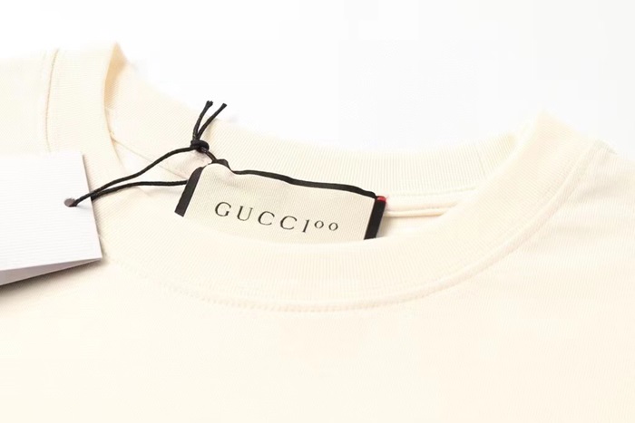 グッチメンズクルーネックアイボリー半袖Tシャツc04705