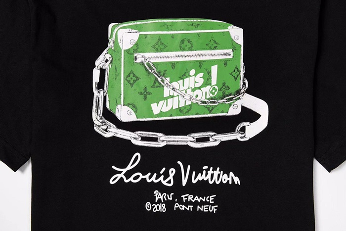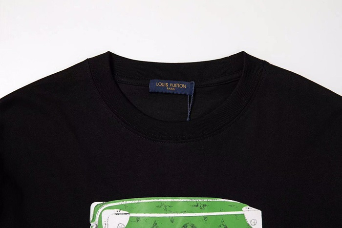 ルイヴィトンメンズブラッククルーネック半袖Tシャツu04101