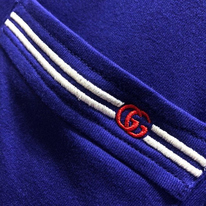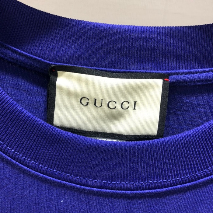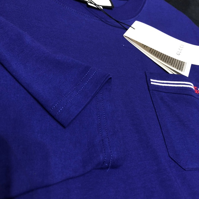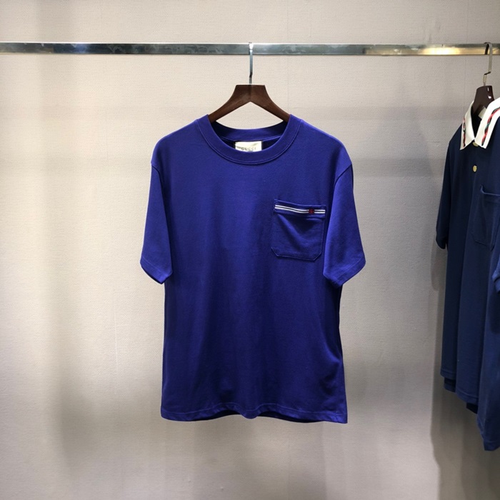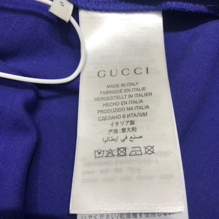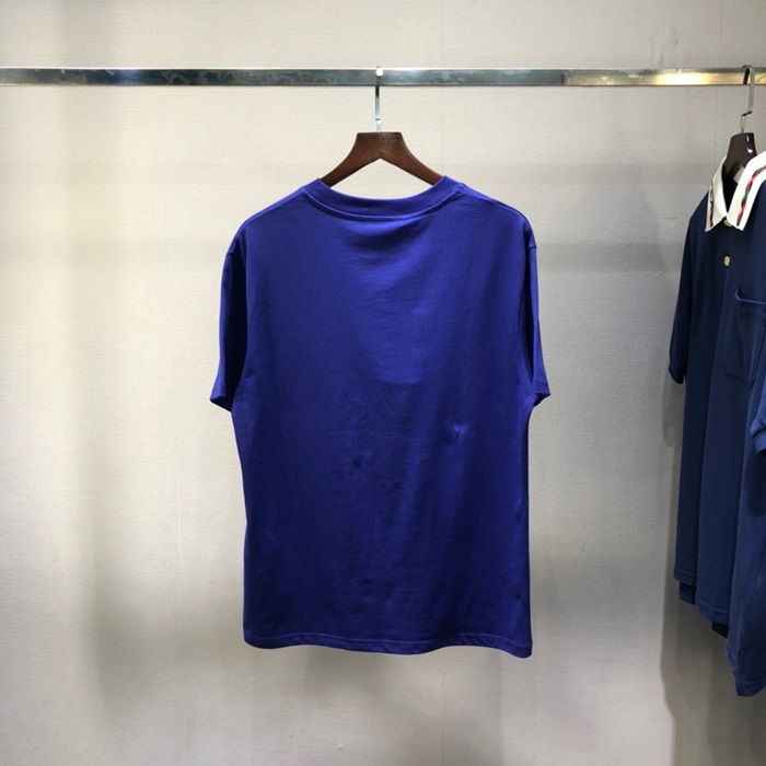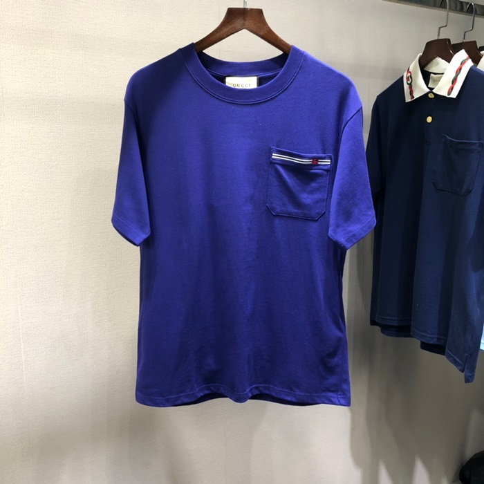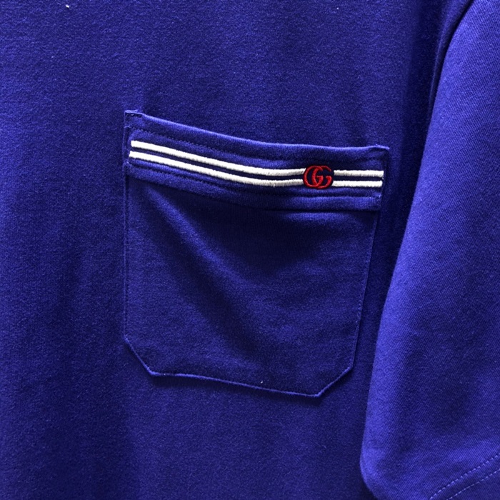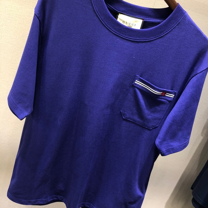 グッチメンズクルーネックブルー半袖Tシャツc04712