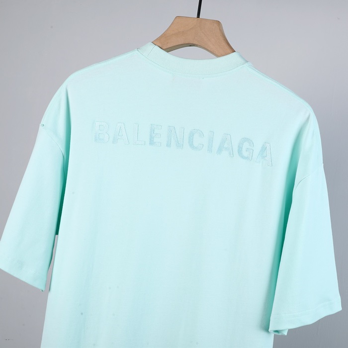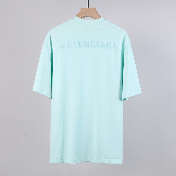バレンシアガメンズクルーネックブルー半袖Tシャツl01379