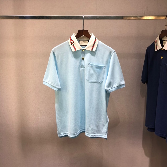 グッチメンズブルーポロ半袖Tシャツc04714