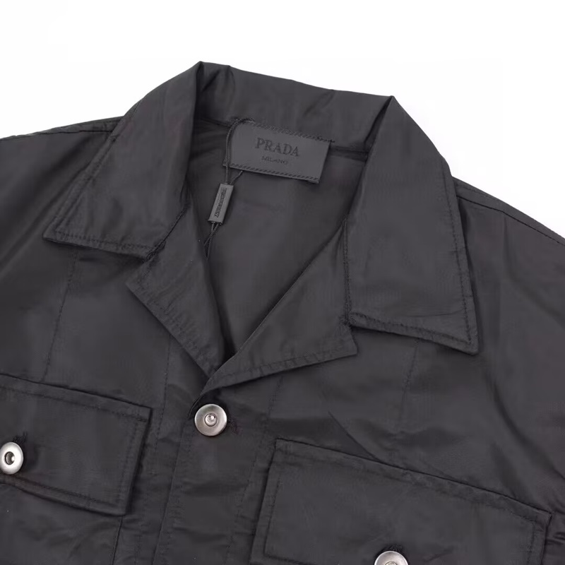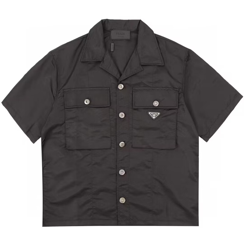 プラダメンズクルーネックブラック半袖シャツa02649