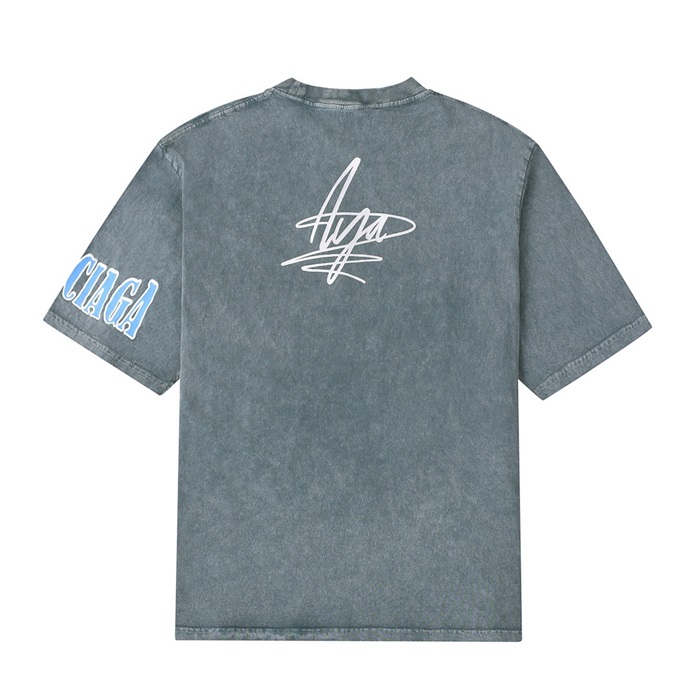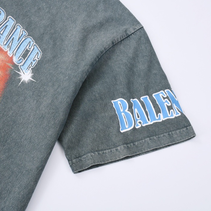 バレンシアガメンズクルーネックブルー半袖Tシャツl01383