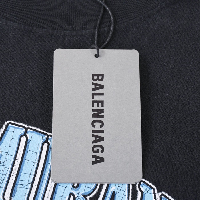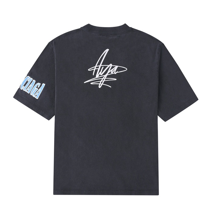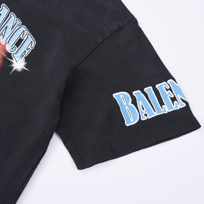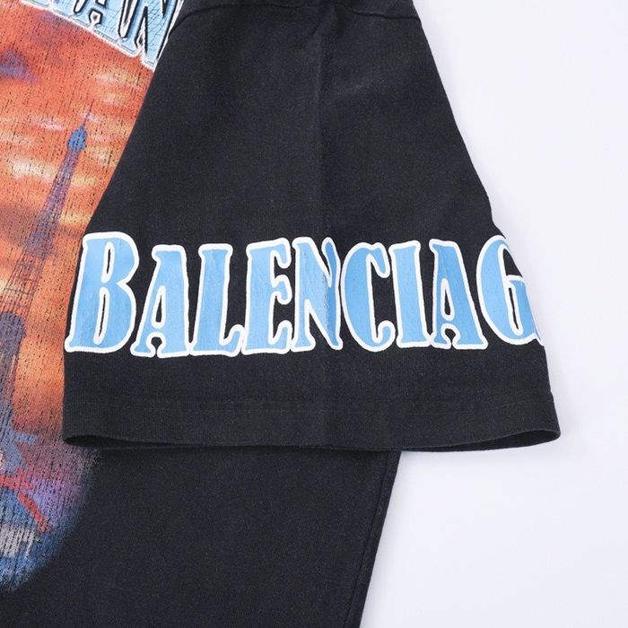 バレンシアガメンズクルーネックブラック半袖Tシャツl01385