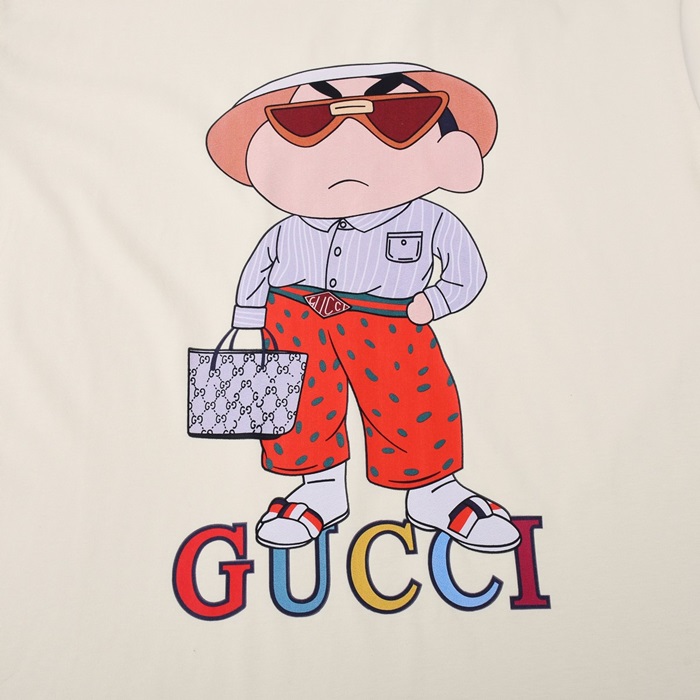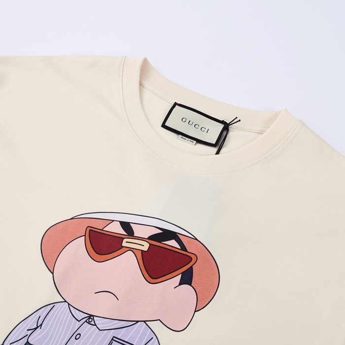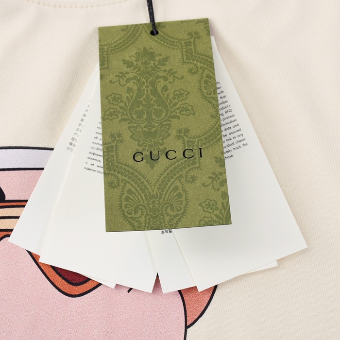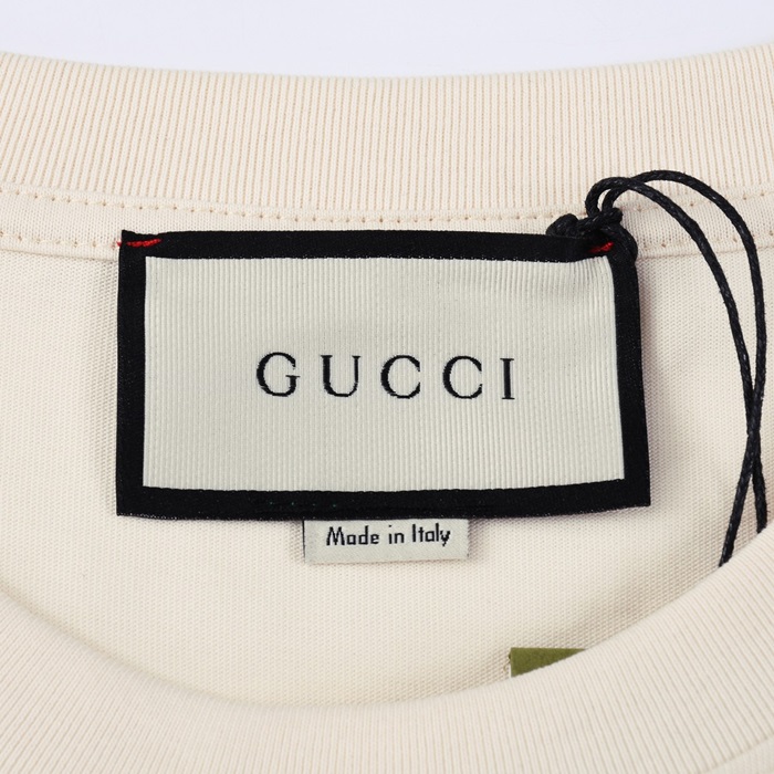 グッチメンズクルーネックアイボリー半袖Tシャツc04718