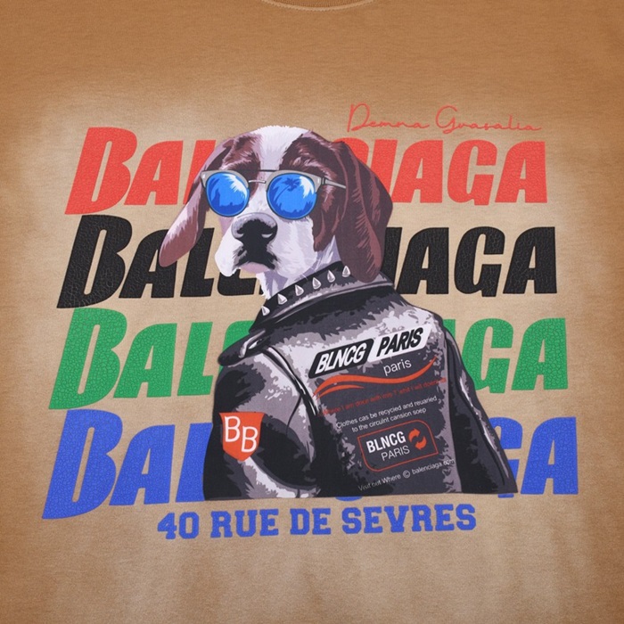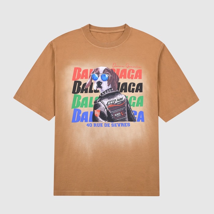 バレンシアガメンズクルーネックキャメル半袖Tシャツl01390