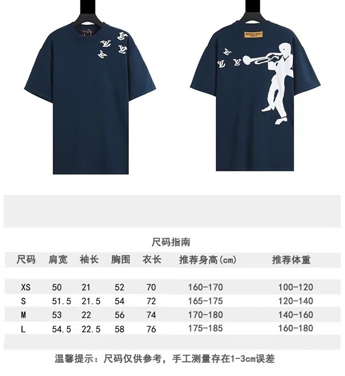 ルイヴィトンメンズネイビークルーネック半袖Tシャツu04144