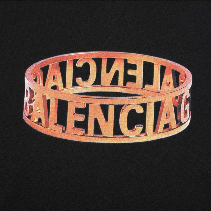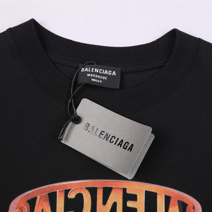 バレンシアガメンズクルーネックブラック半袖Tシャツl01397