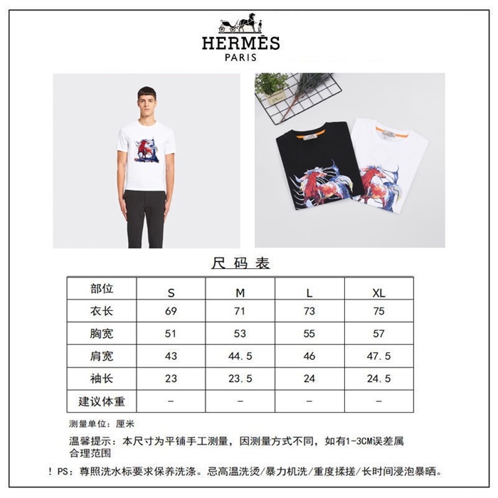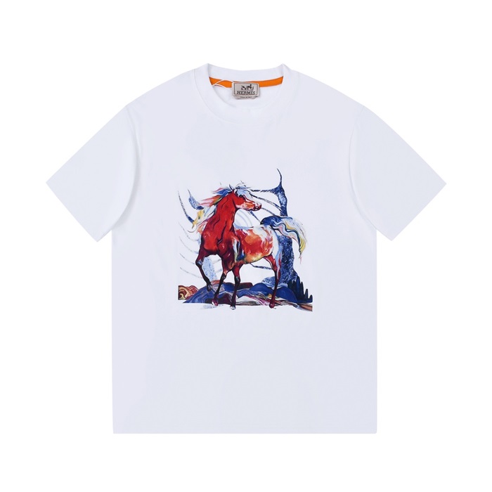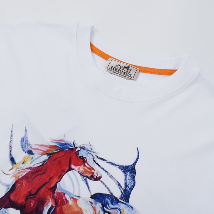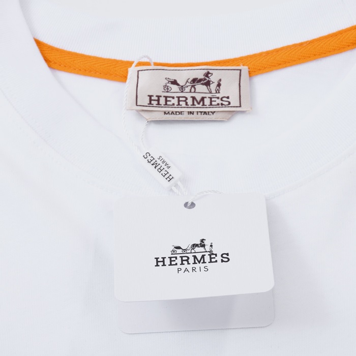 エルメスメンズホワイトクルーネック半袖Tシャツr0745