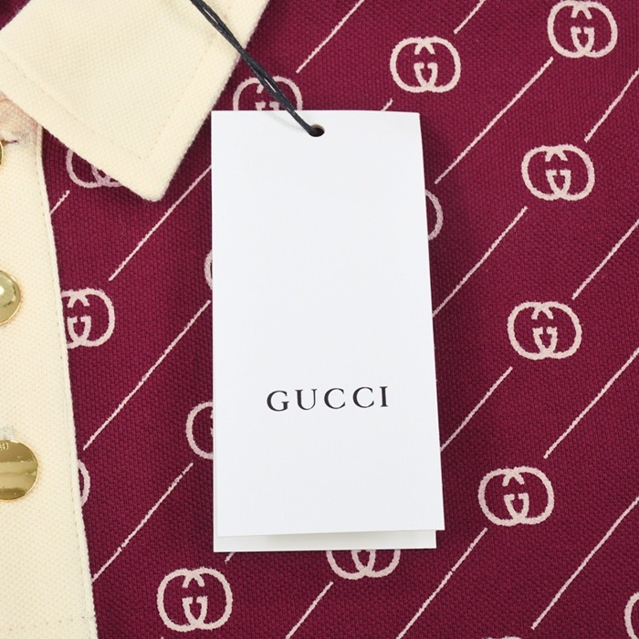 グッチメンズバーガンディポロ半袖Tシャツc04737
