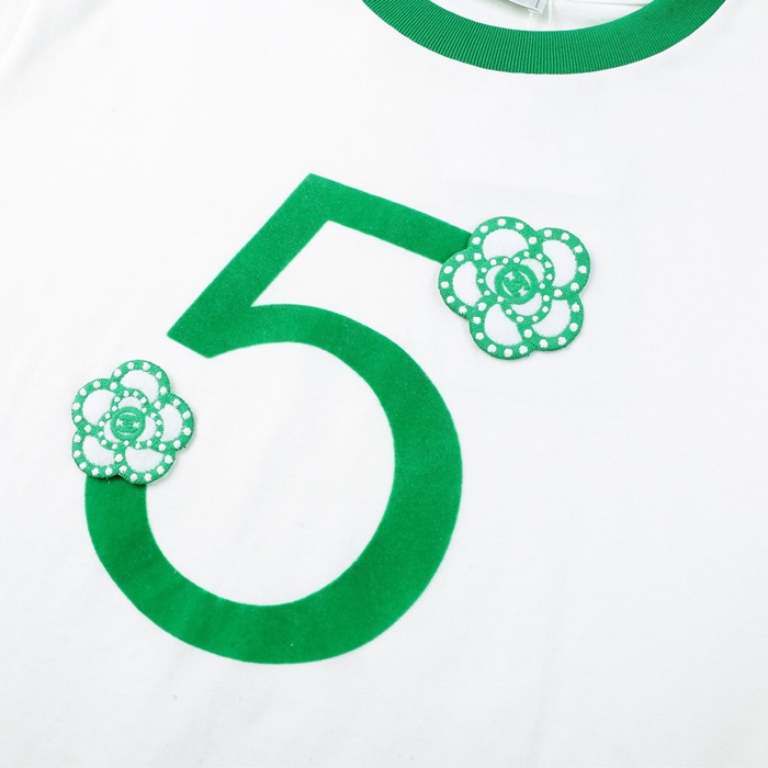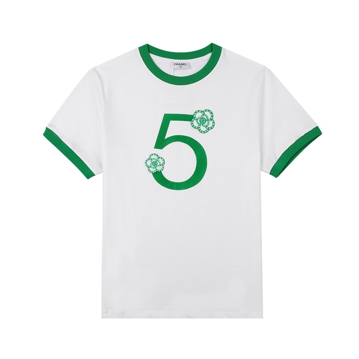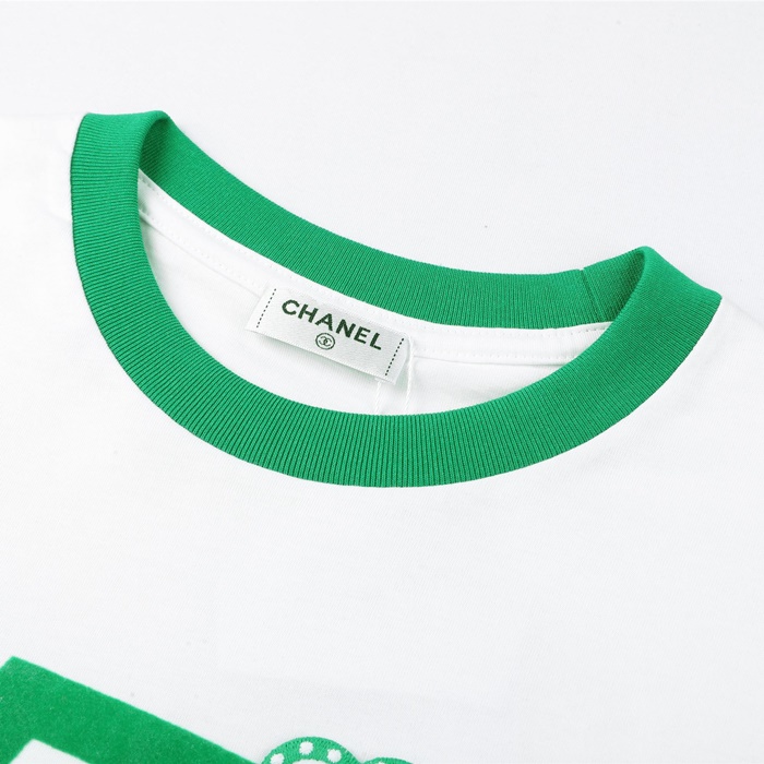 シャネルレディースクルーネックホワイト半袖Tシャツl0881