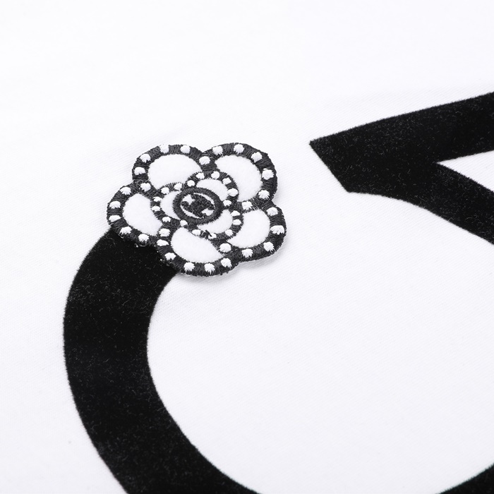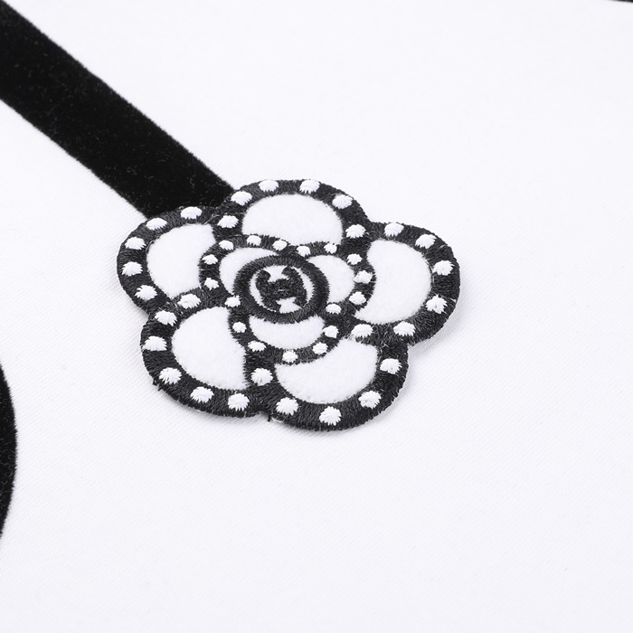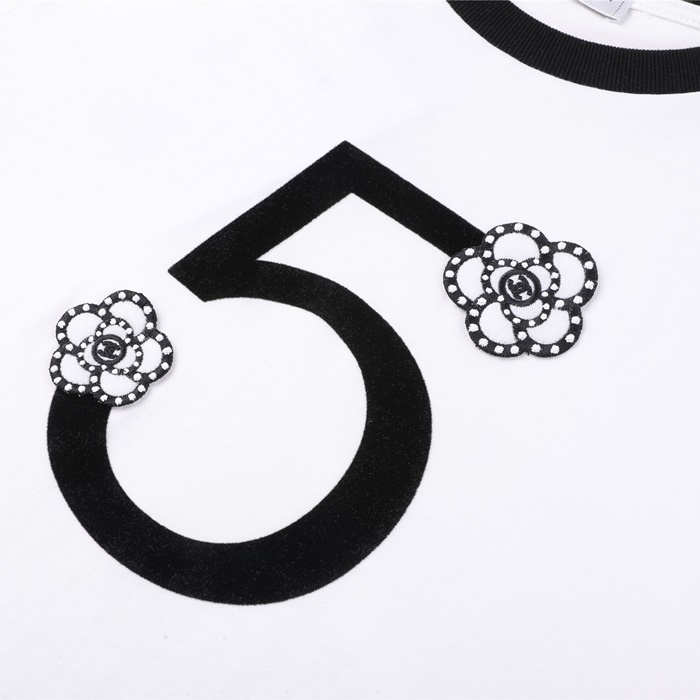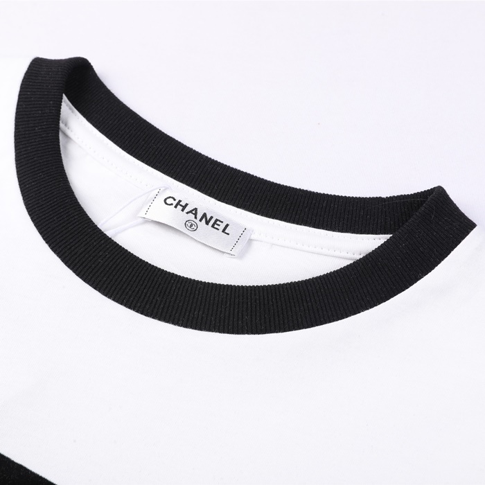 シャネルレディースクルーネックホワイト半袖Tシャツl0882