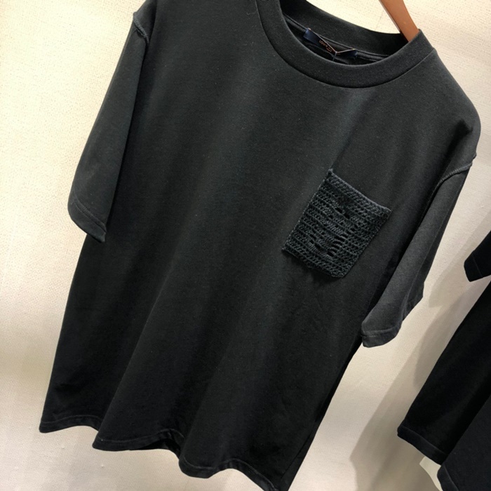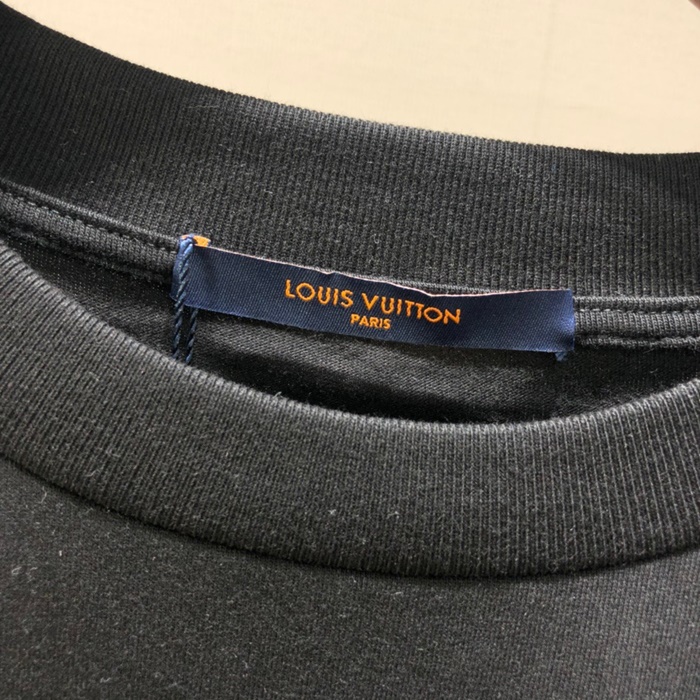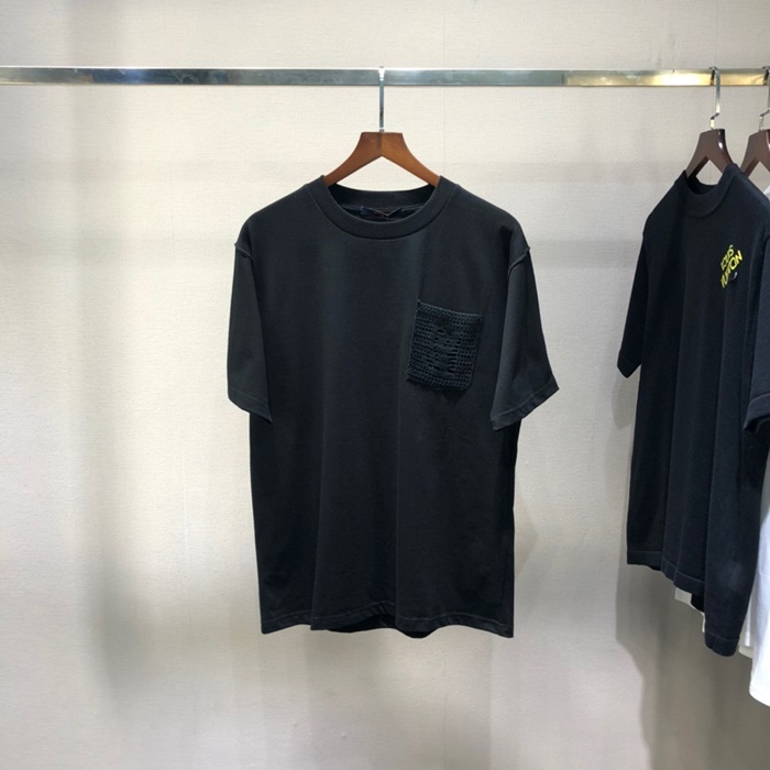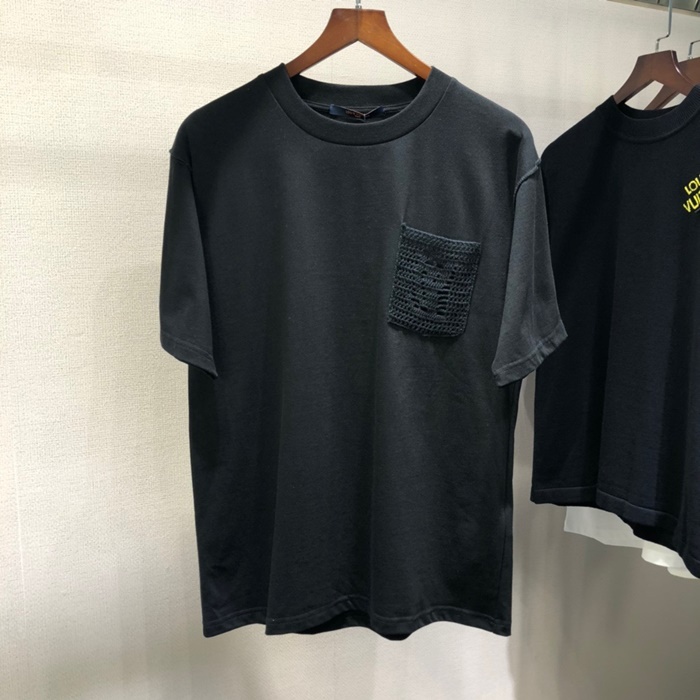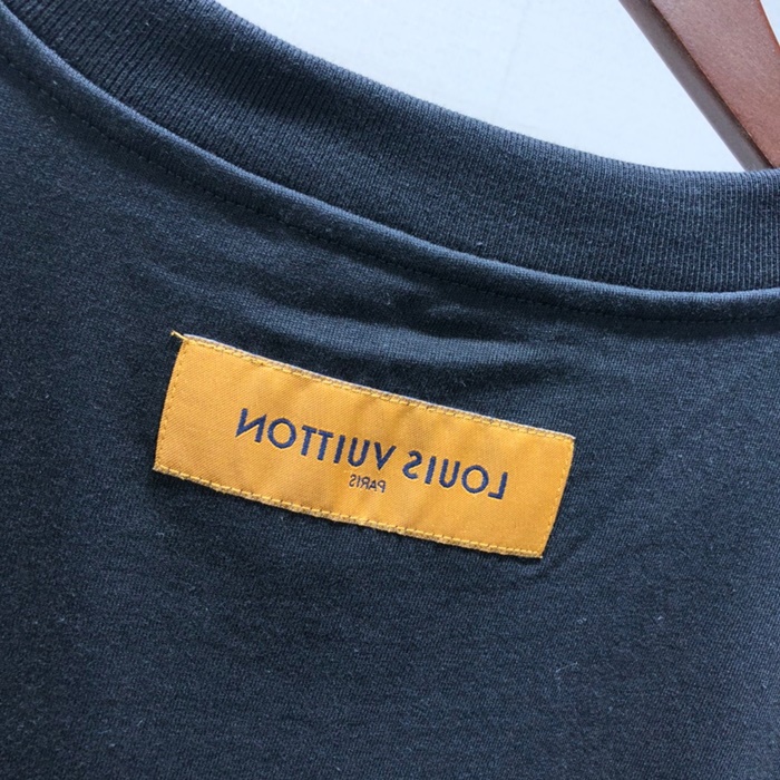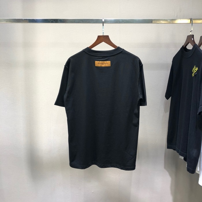 ルイヴィトンメンズブラッククルーネック半袖Tシャツu04163