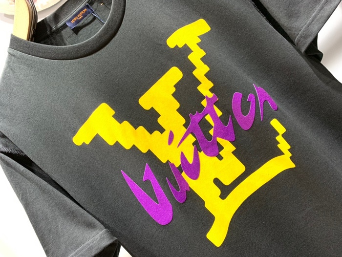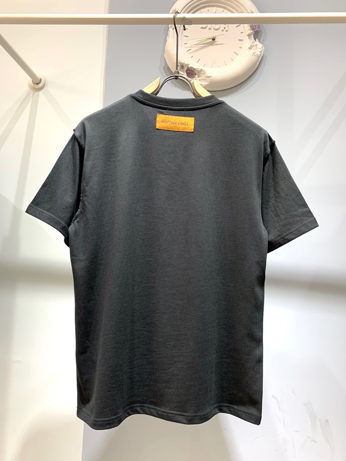 ルイヴィトンメンズブラッククルーネック半袖Tシャツu04165