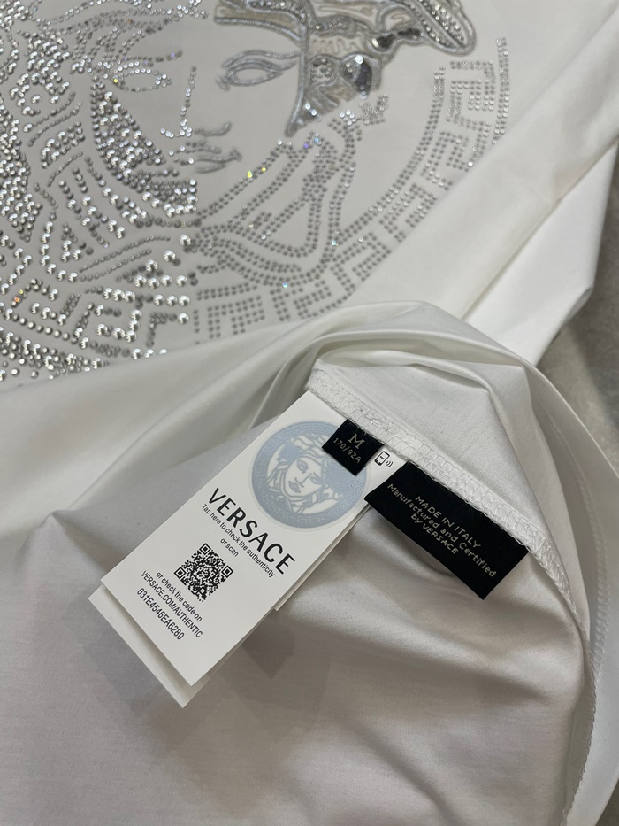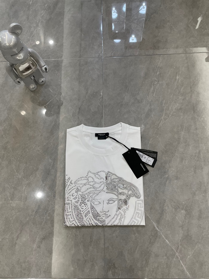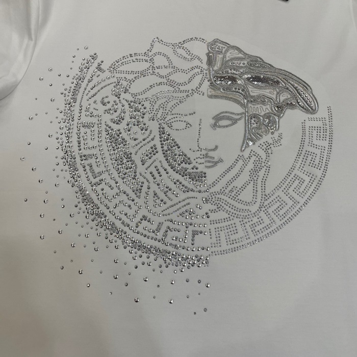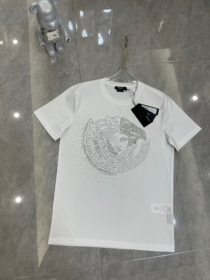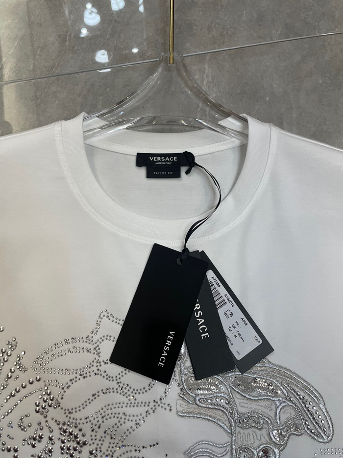 ヴェルサーチェメンズホワイトクルーネック半袖Tシャツr0895