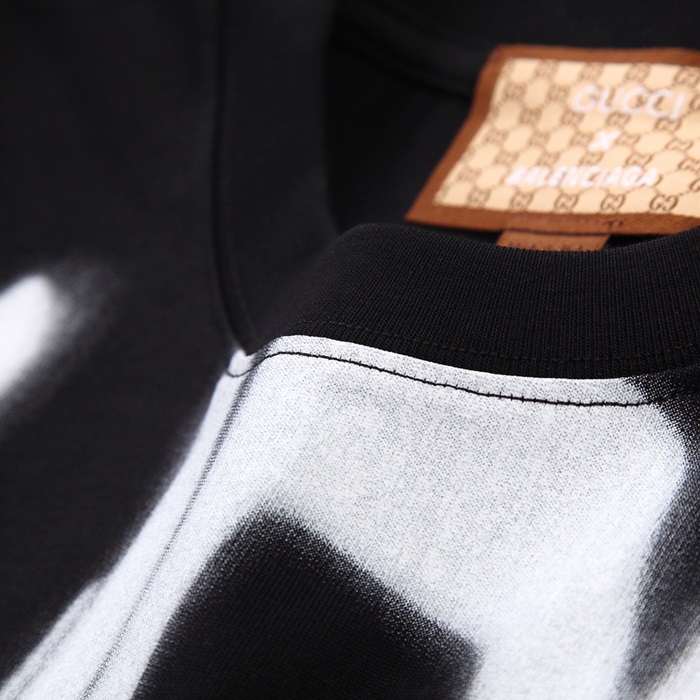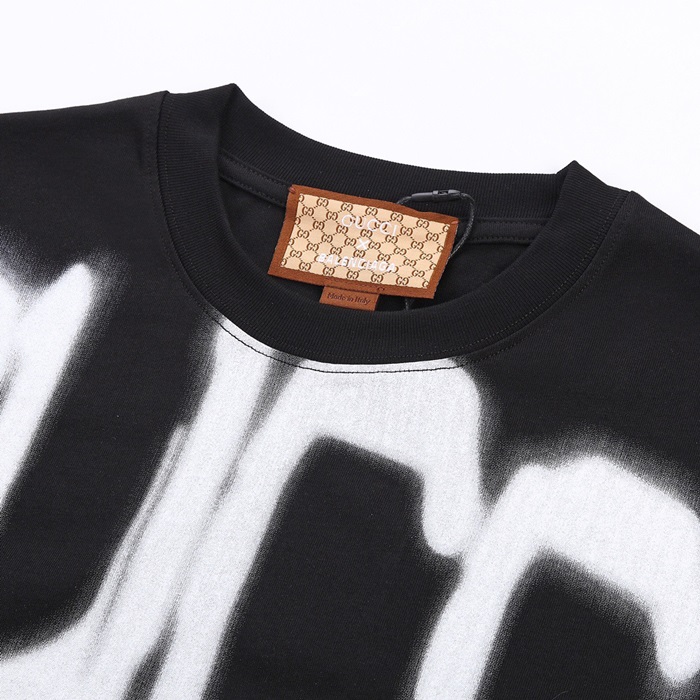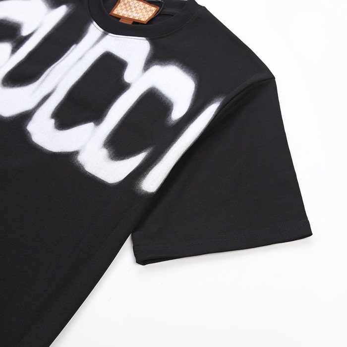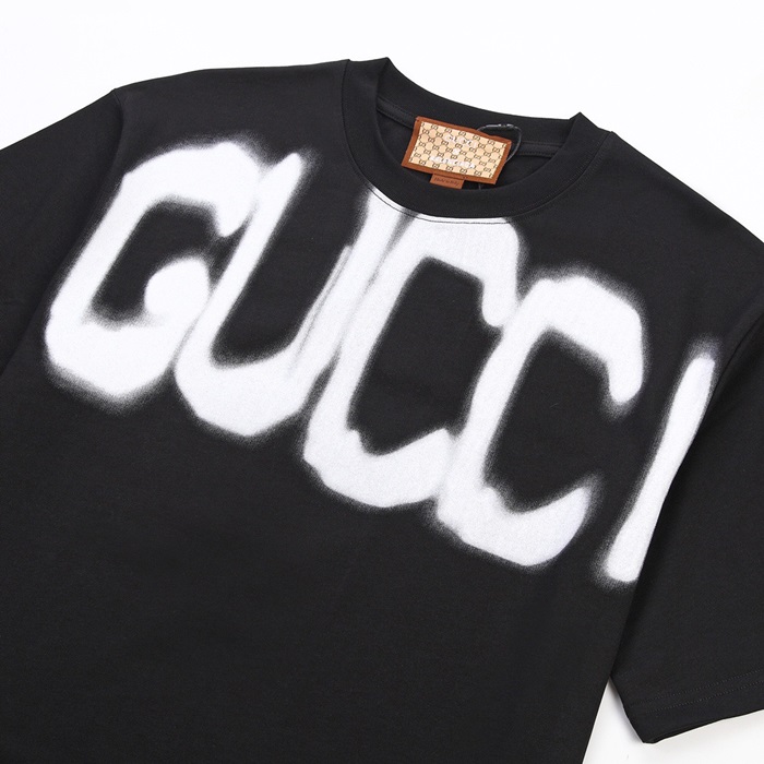 グッチメンズクルーネックブラック半袖Tシャツc04740