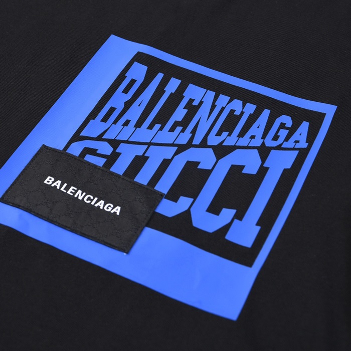 バレンシアガメンズクルーネックブラック半袖Tシャツl01402