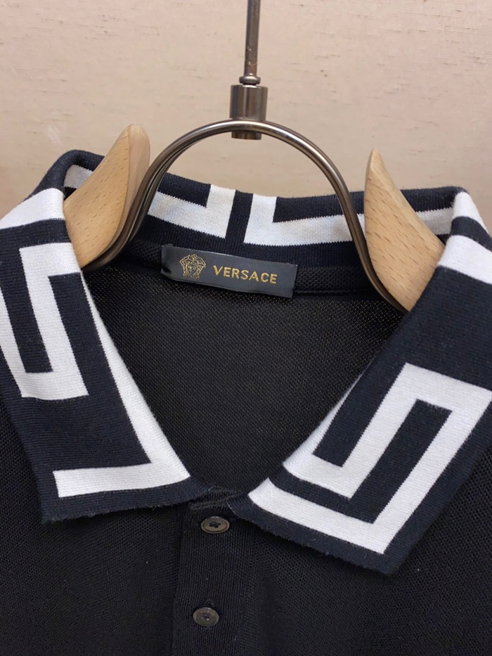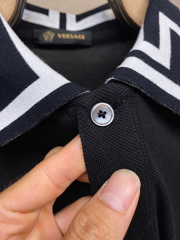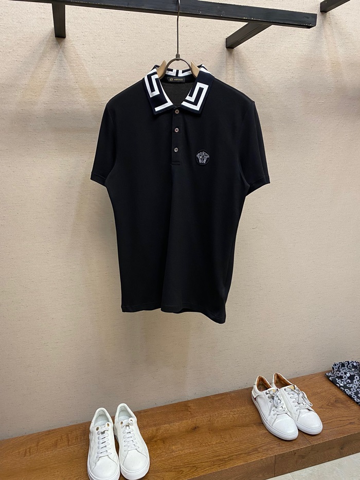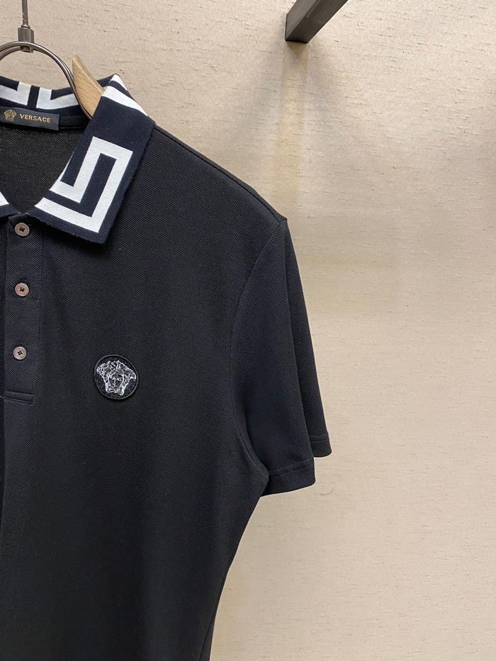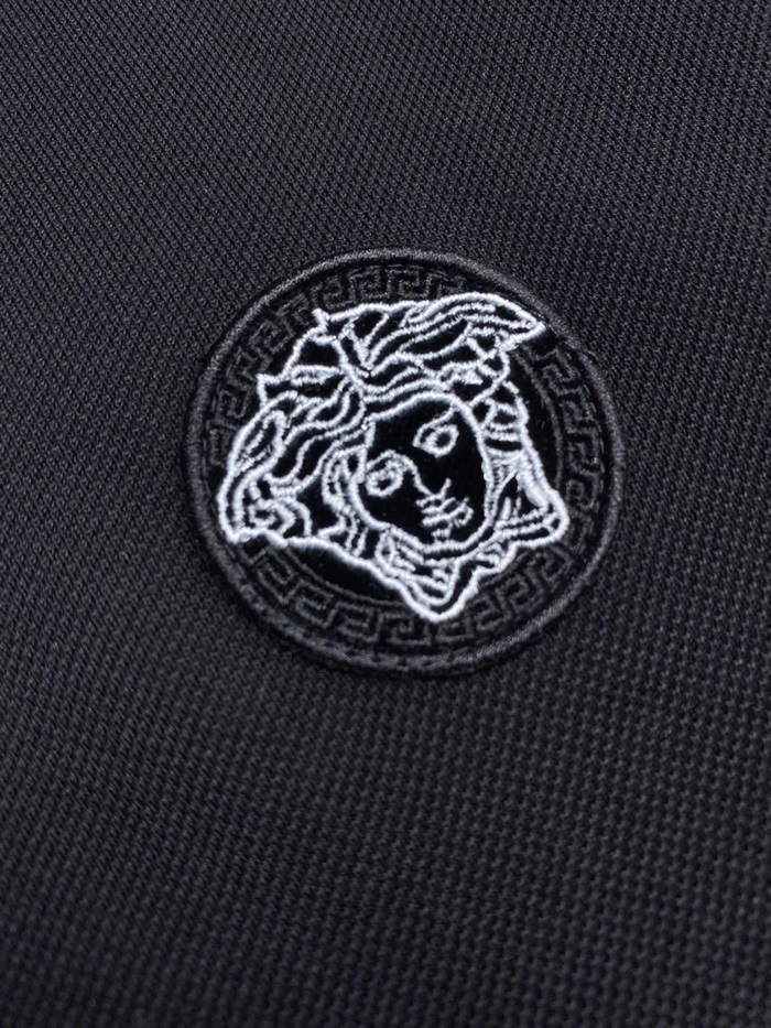 ヴェルサーチェメンズブラックポロ半袖Tシャツr0899
