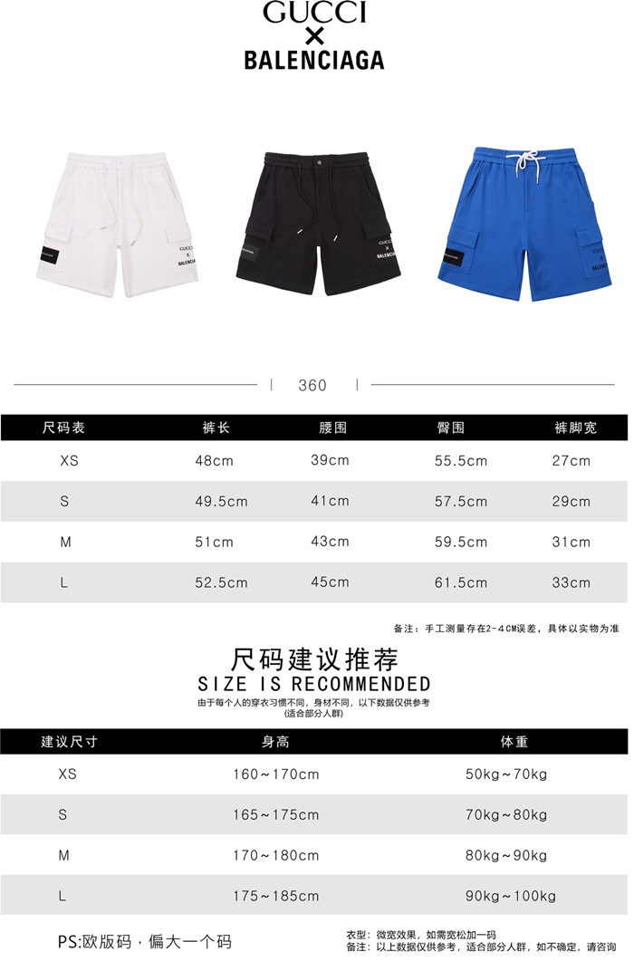 バレンシアガメンズトレンディブラックショートパンツl01408