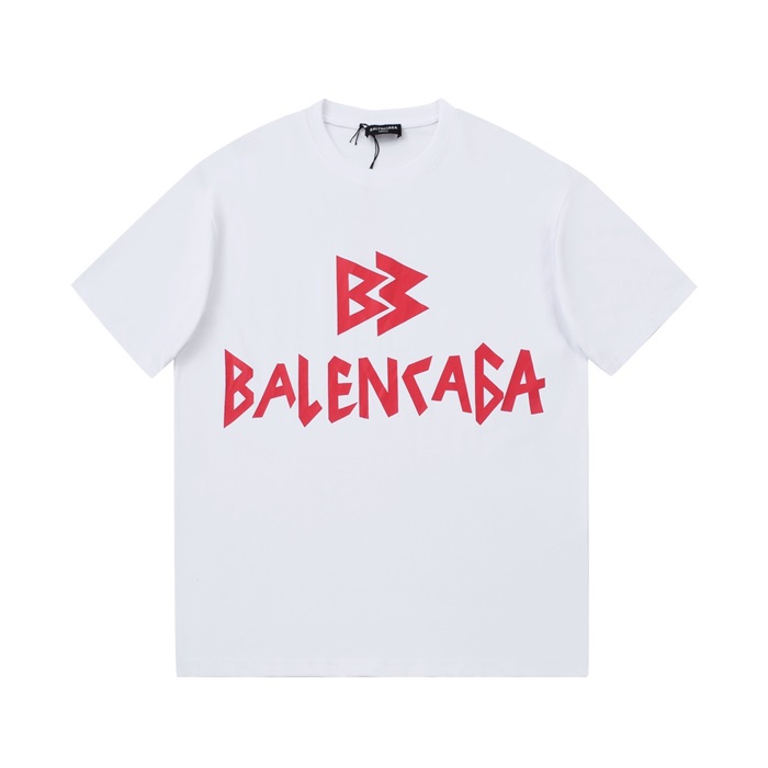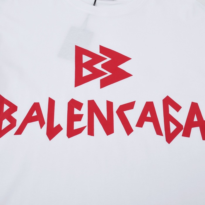 バレンシアガメンズホワイトクルーネック半袖Tシャツl01409