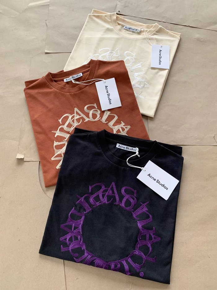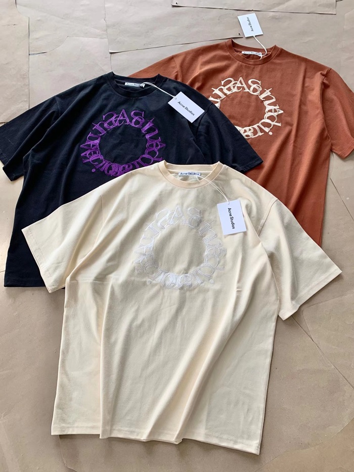 アクネストゥディオズユニセックスアイボリークルーネック半袖Tシャツe0144