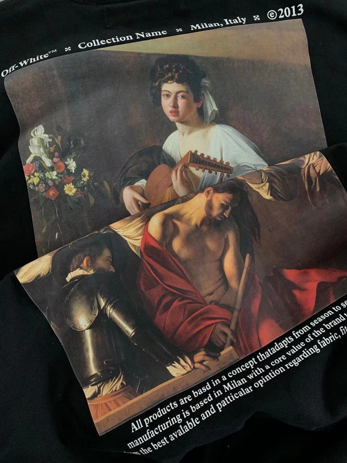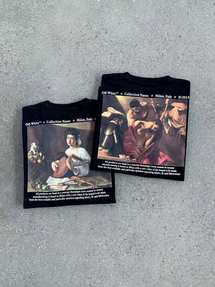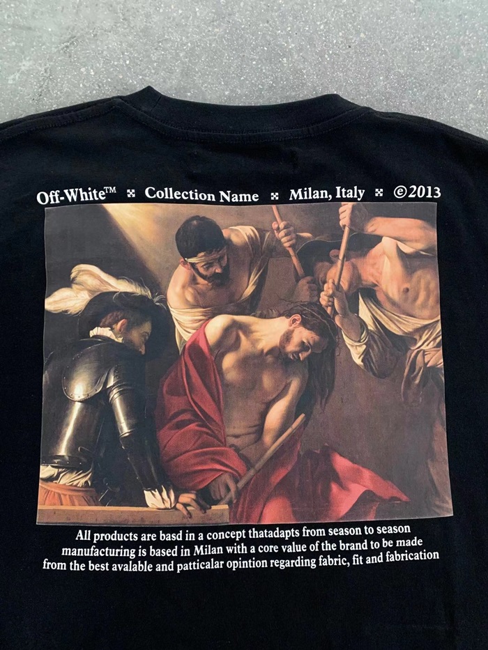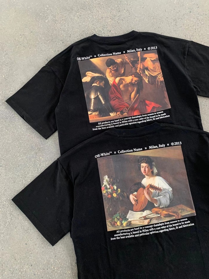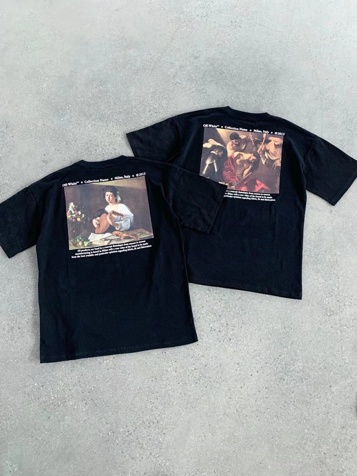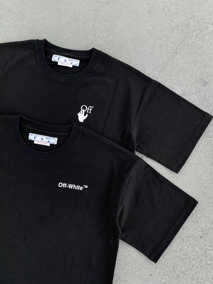 オフホワイトメンズモダンブラック半袖Tシャツf0827