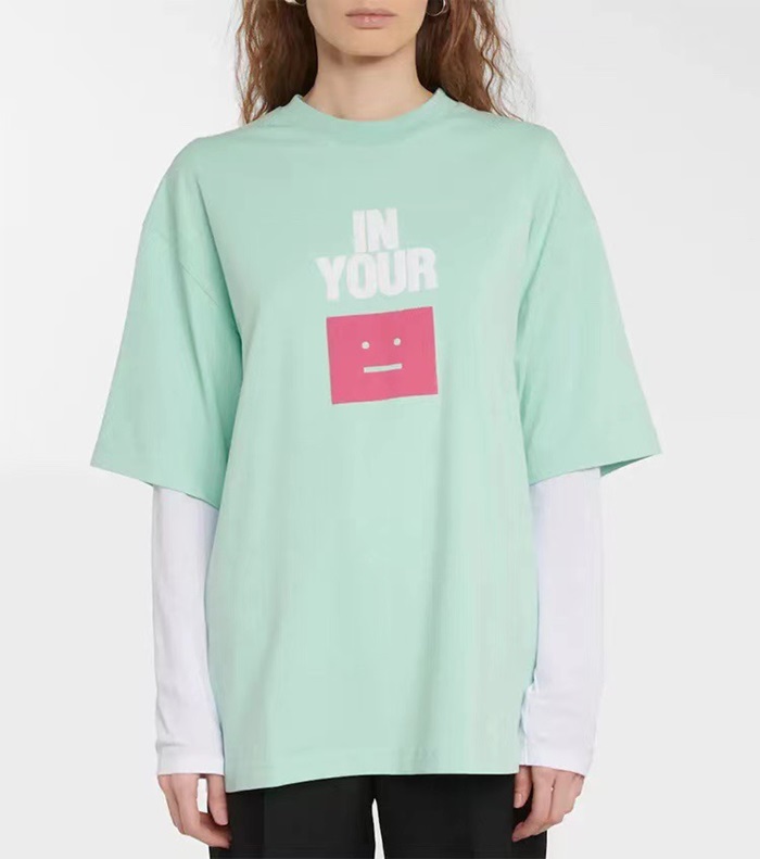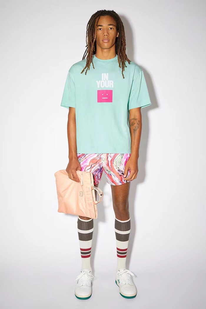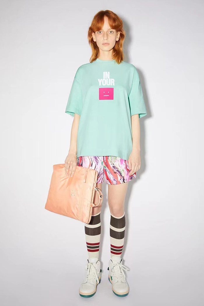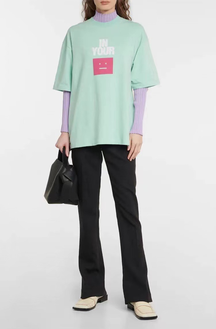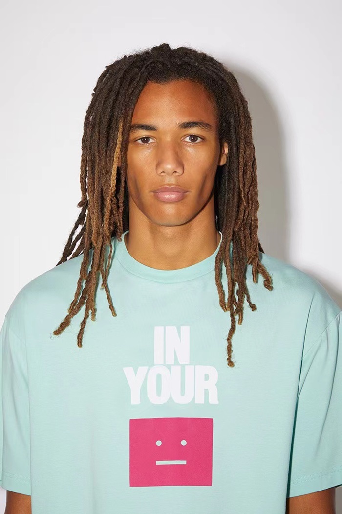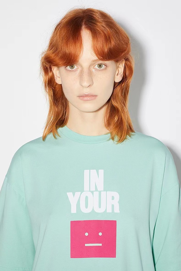 アクネストゥディオズユニセックスブルークルーネック半袖Tシャツe0145