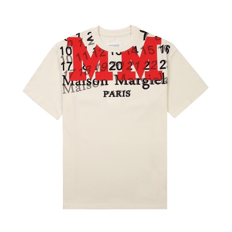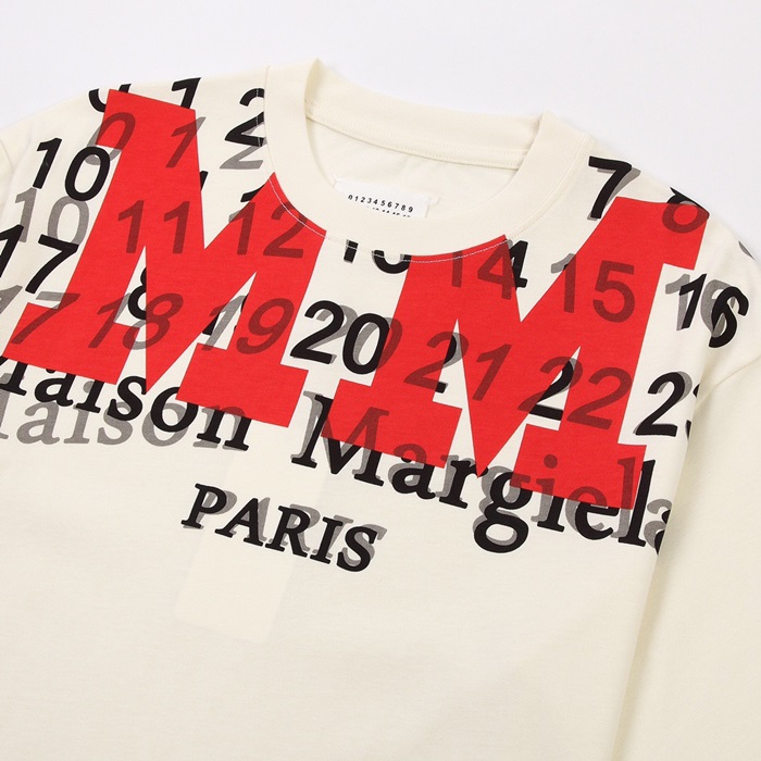メゾンマルジェラユニセックスクルーネックアイボリー半袖Tシャツi0089