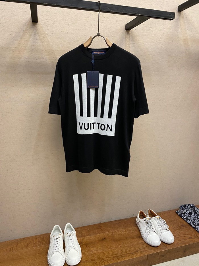 ルイヴィトンメンズブラッククルーネック半袖Tシャツu04196