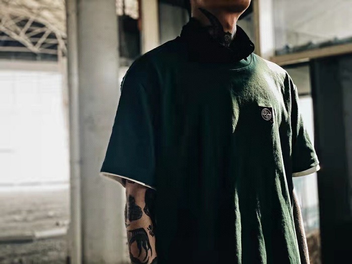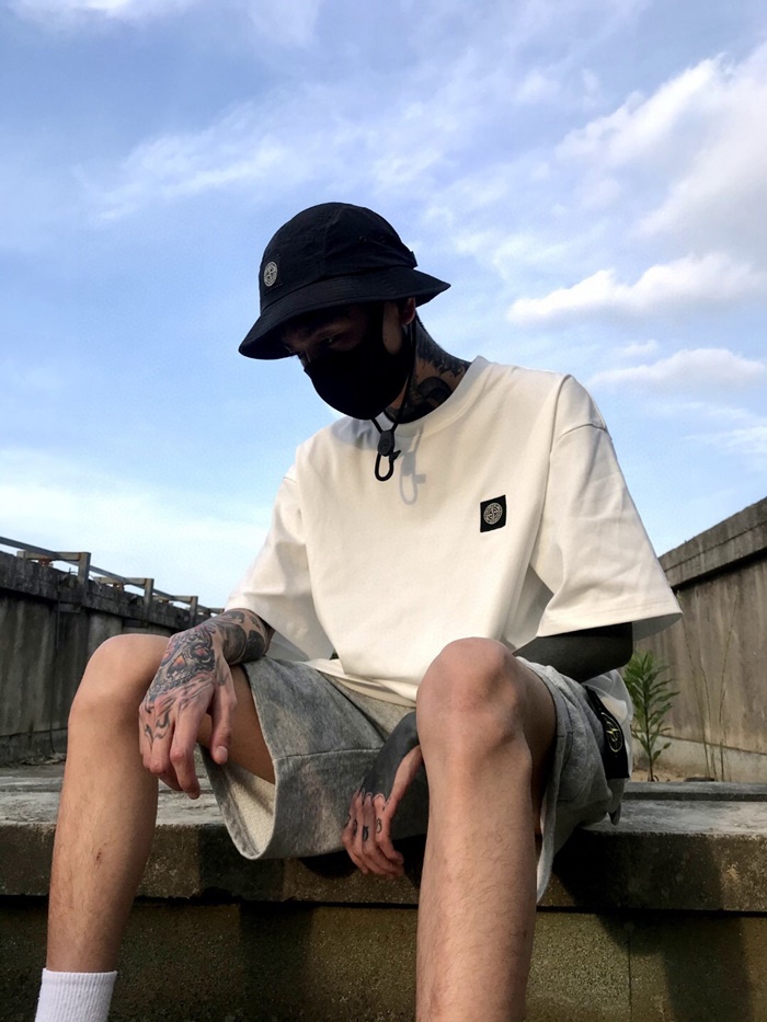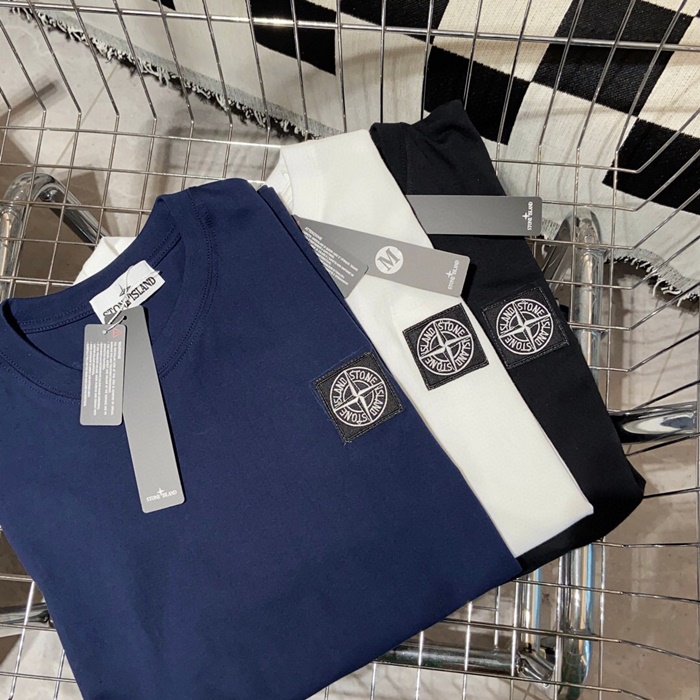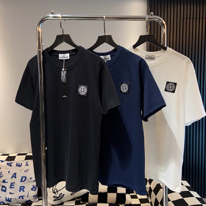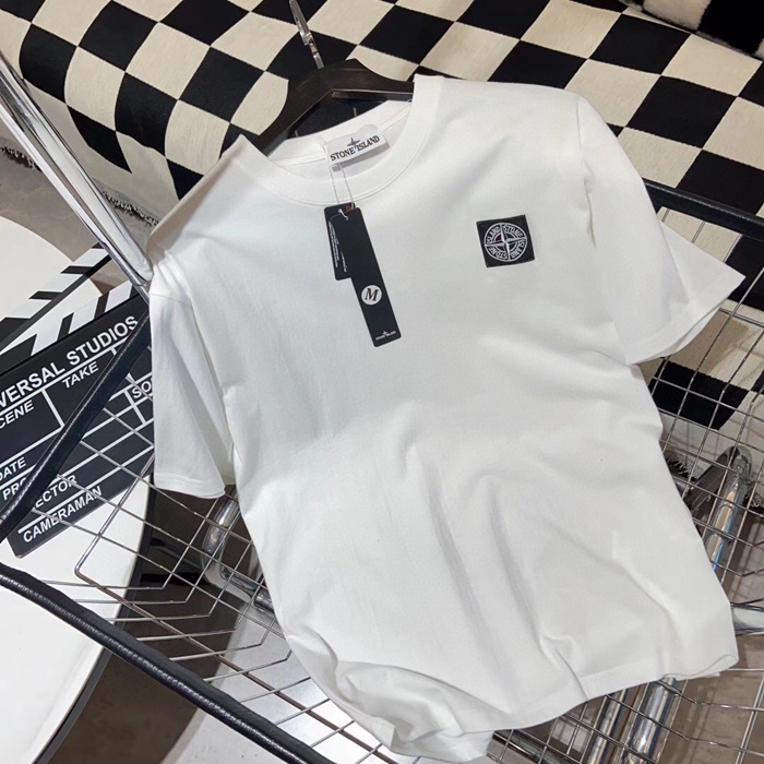 ストーンアイランドメンズホワイトクルーネック半袖Tシャツo0473