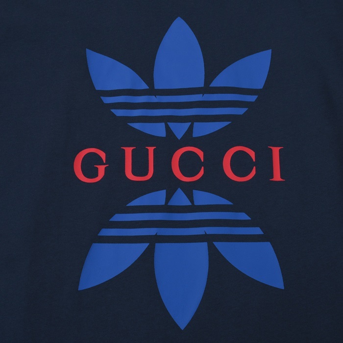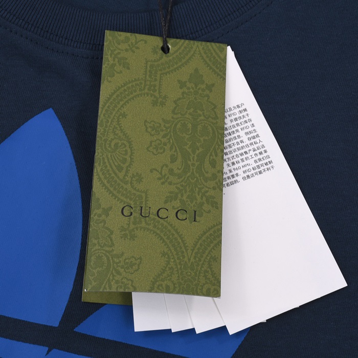 グッチユニセックスクルーネックネイビー半袖Tシャツc04817