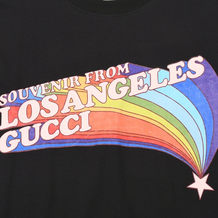 グッチユニセックスクルーネックブラック半袖Tシャツc04826