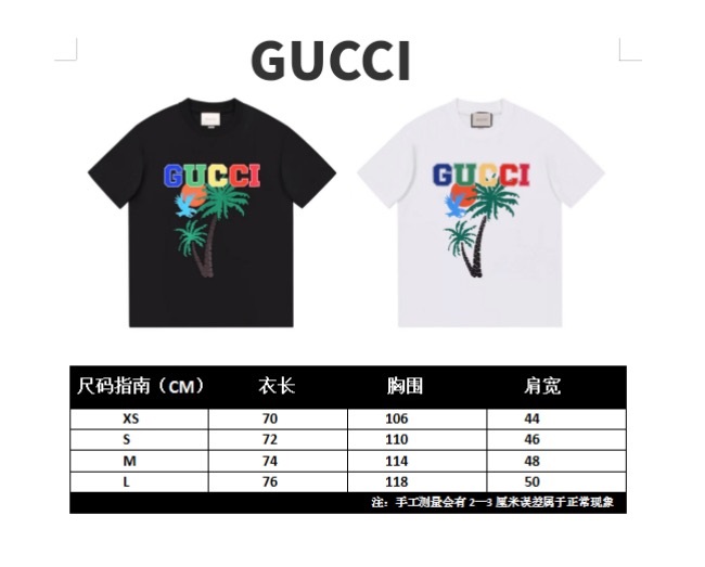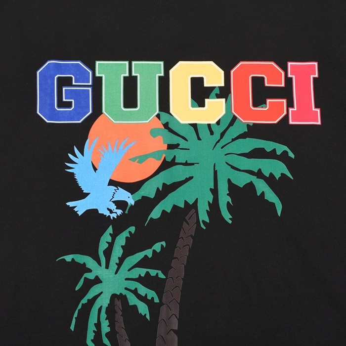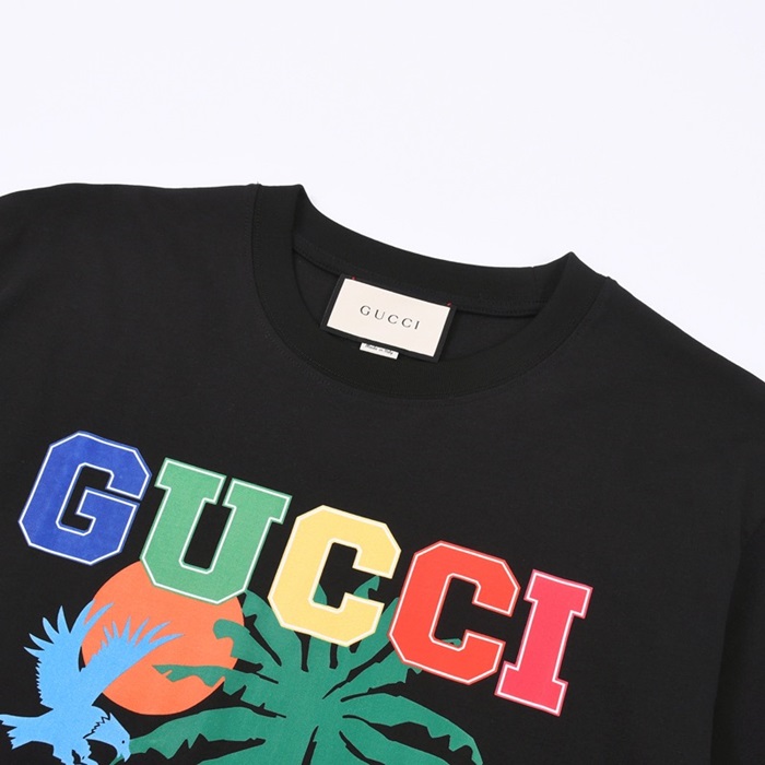 グッチユニセックスクルーネックブラック半袖Tシャツc04828