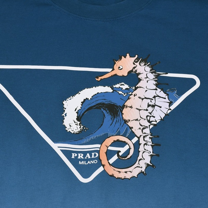 プラダメンズクルーネックブルー半袖Tシャツa02687
