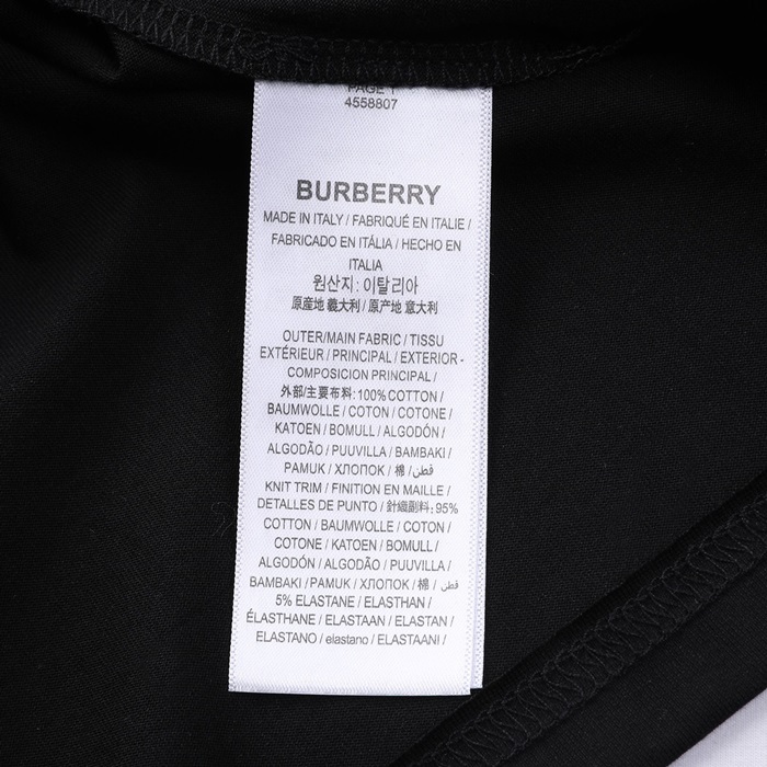 バーバリーメンズブラッククルーネック半袖Tシャツr04326