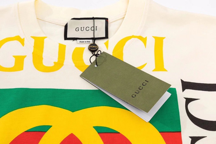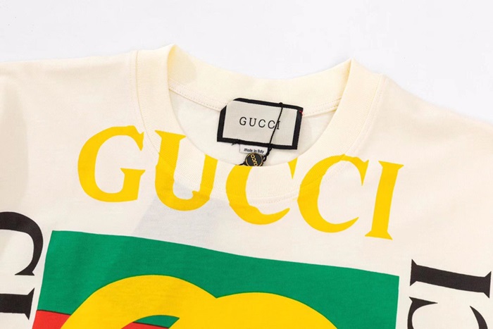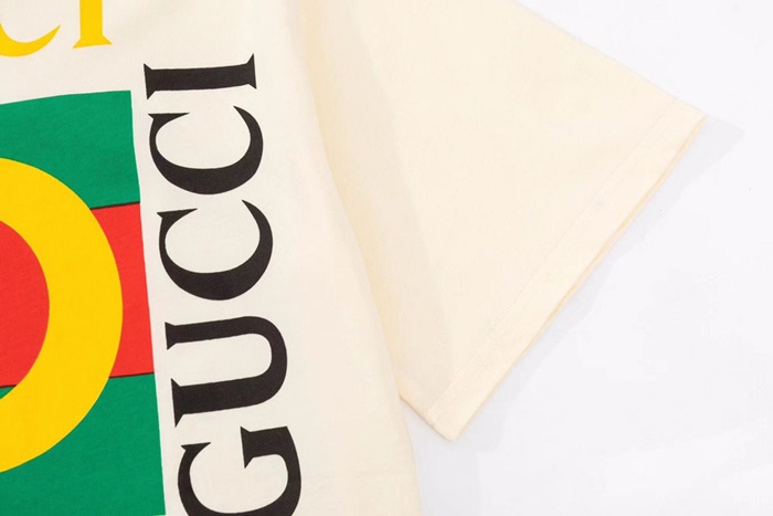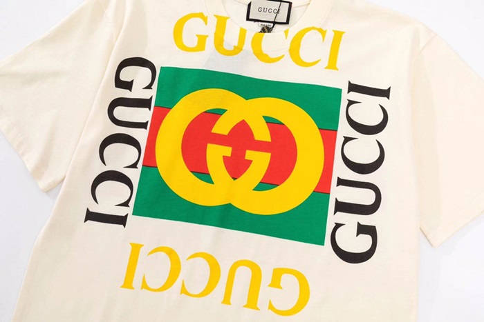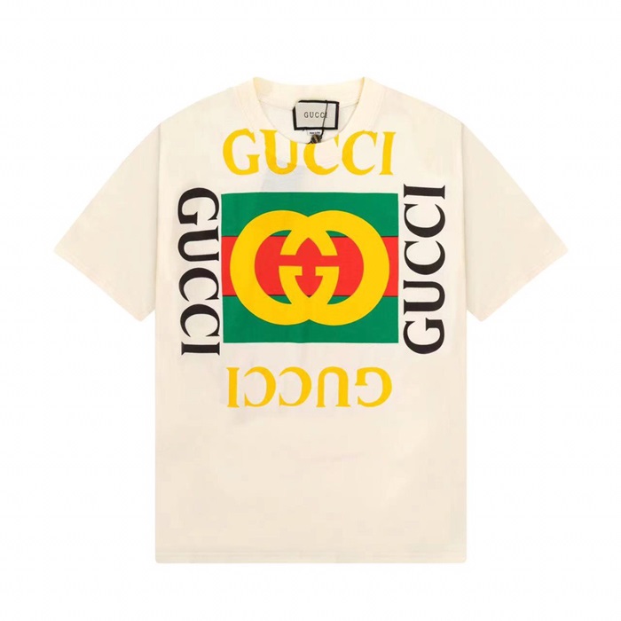グッチユニセックスクルーネックアイボリー半袖Tシャツc04829