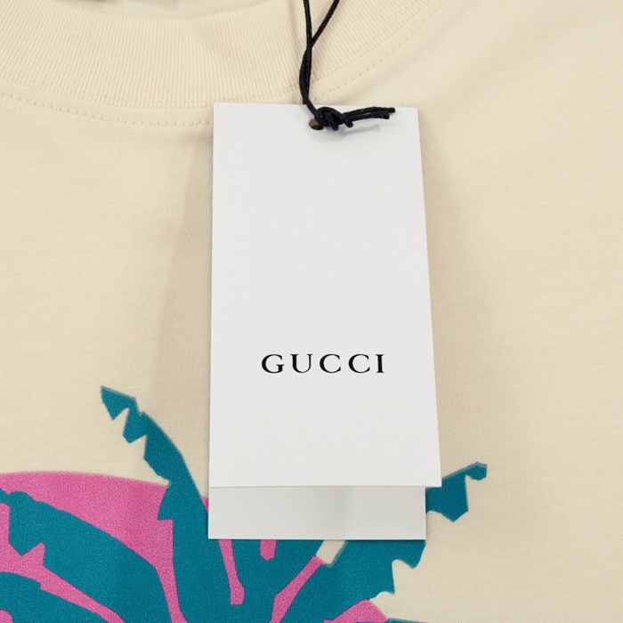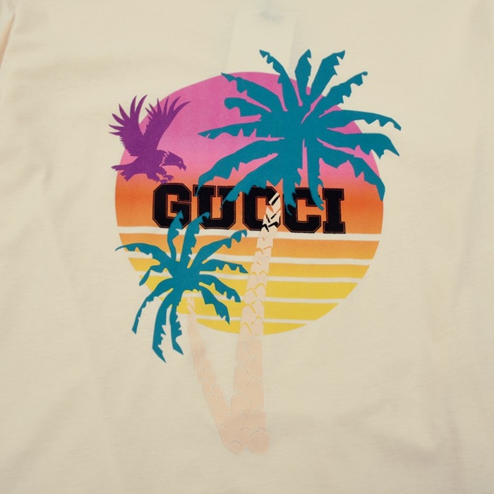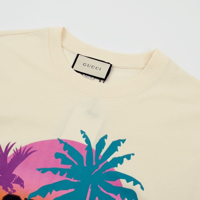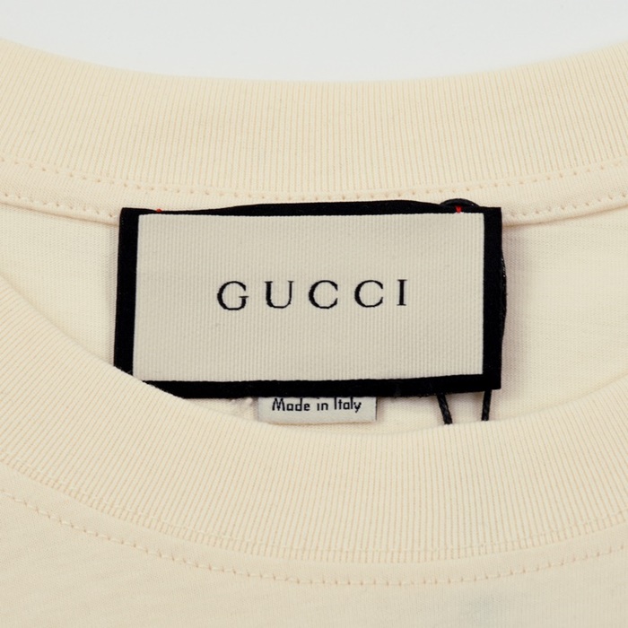 グッチユニセックスクルーネックアイボリー半袖Tシャツc04830
