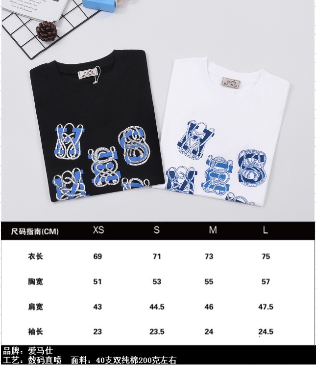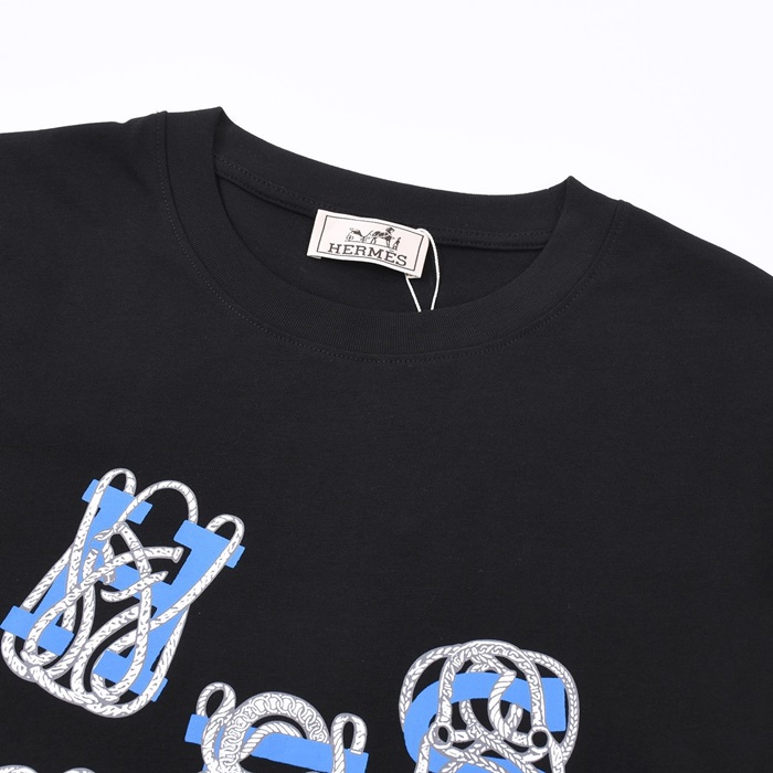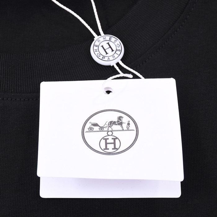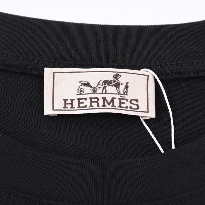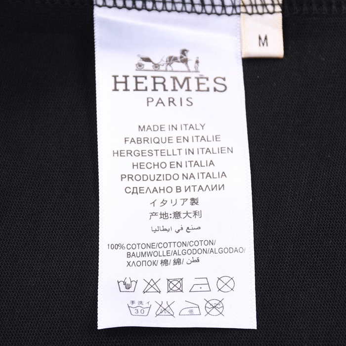 エルメスメンズブラッククルーネック半袖Tシャツr0776