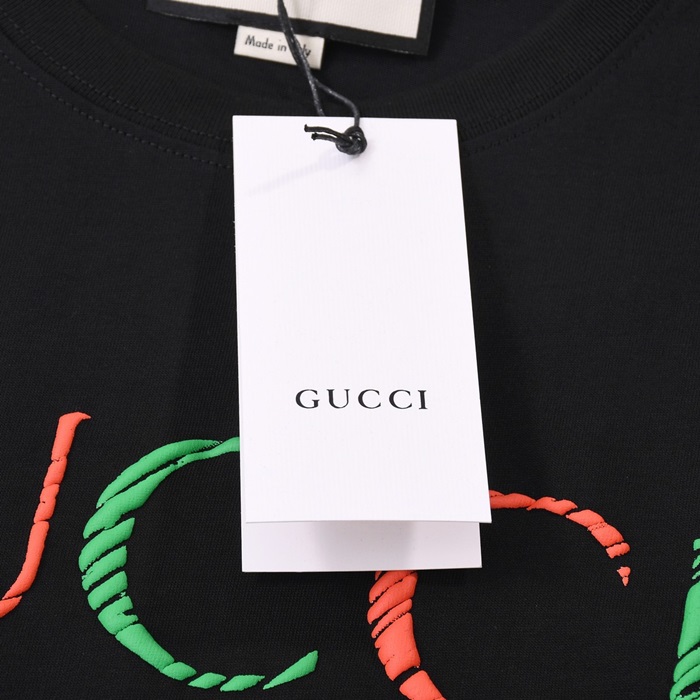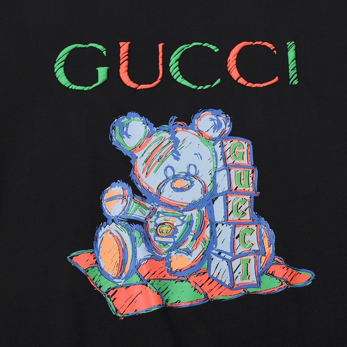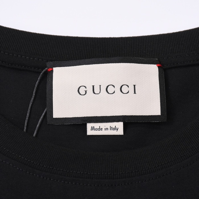 グッチメンズブラッククルーネック半袖Tシャツc04847