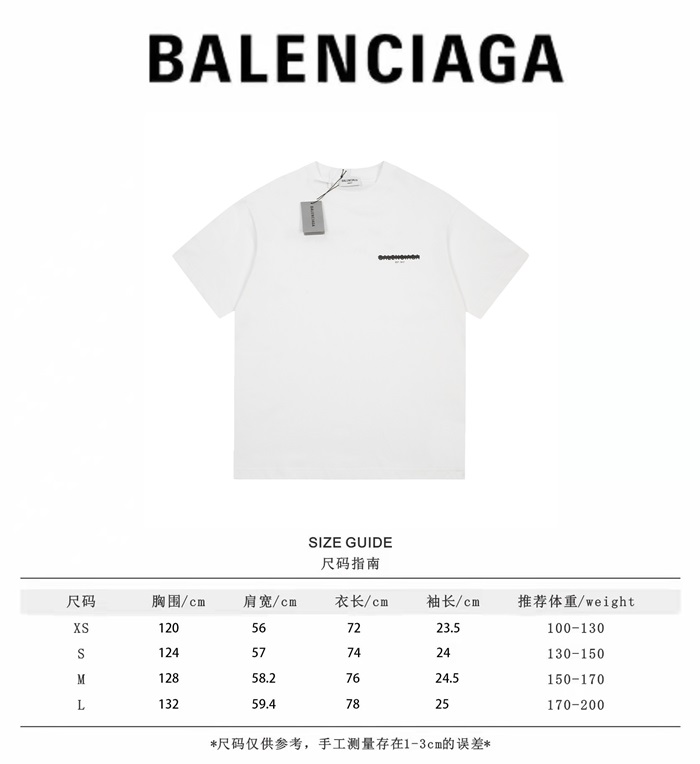 バレンシアガメンズクルーネックホワイト半袖Tシャツl01490