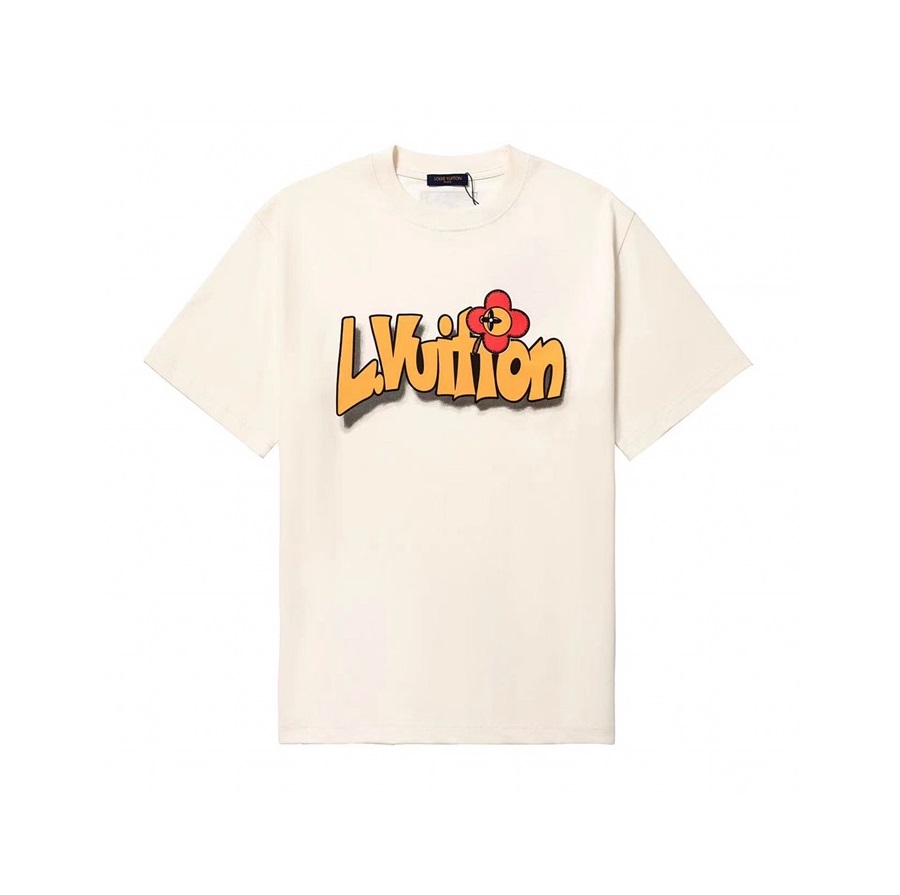 ルイヴィトンメンズアイボリークルーネック半袖Tシャツu04343