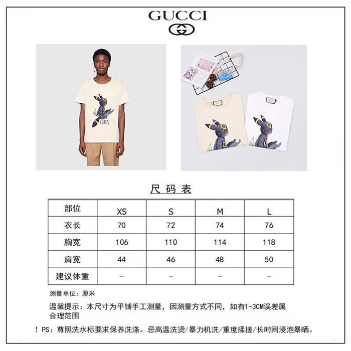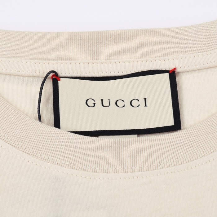 グッチメンズアイボリークルーネック半袖Tシャツc04852