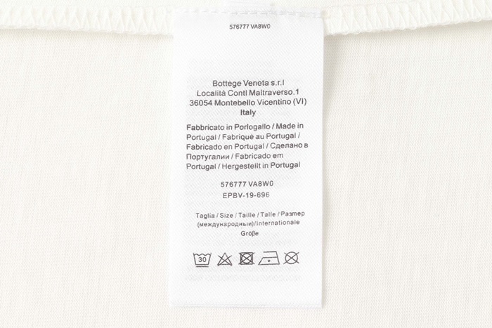 ボッテガヴェネタユニセックスクルーネックホワイト半袖Tシャツt0274