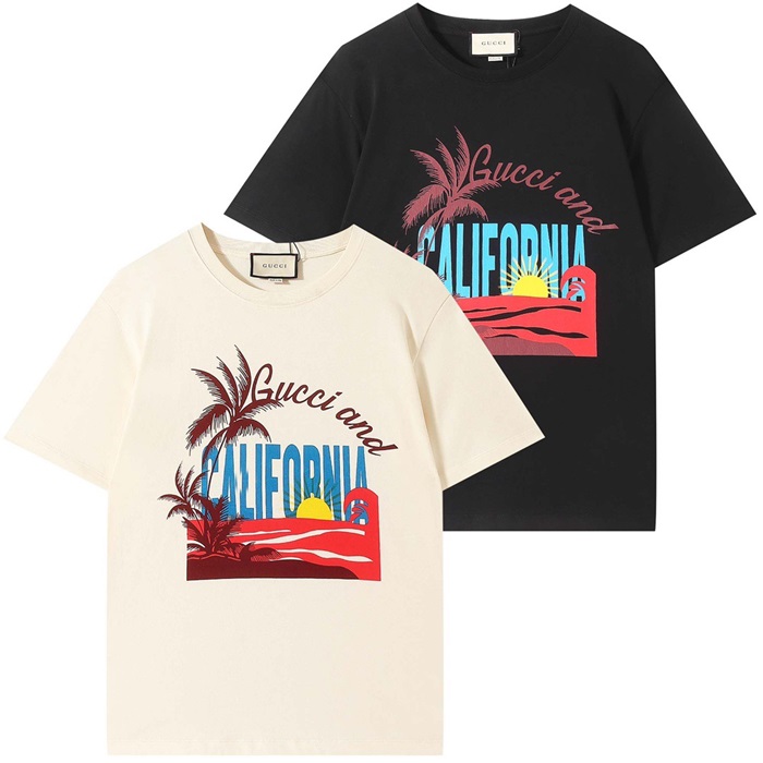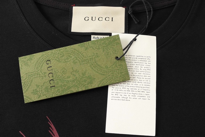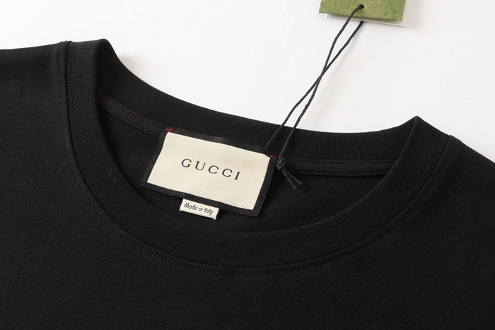 グッチメンズブラッククルーネック半袖Tシャツc04853