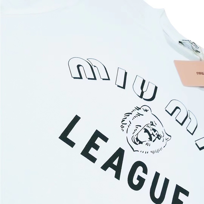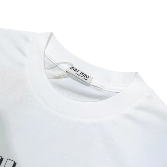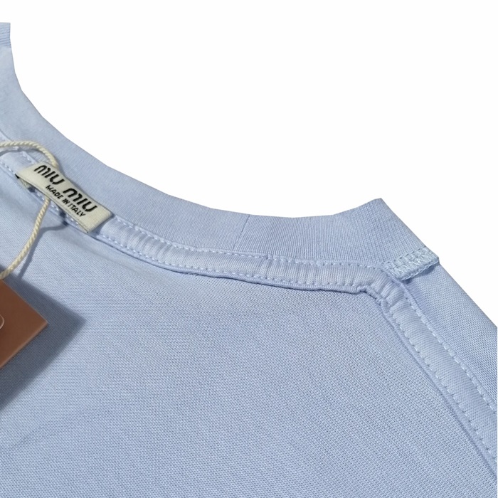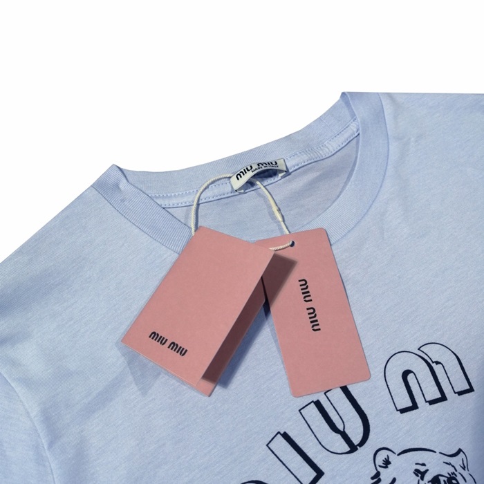 ミュウミュウレディースクルーネックブルー半袖Tシャツu0248