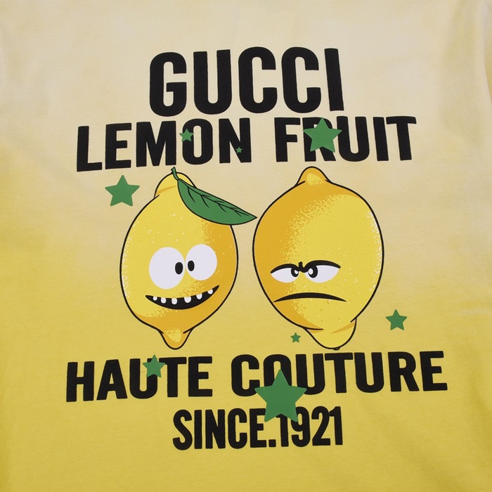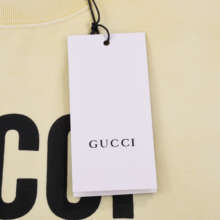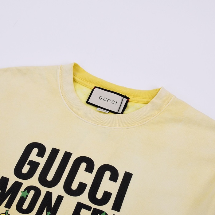グッチメンズイエロークルーネック半袖Tシャツc04858