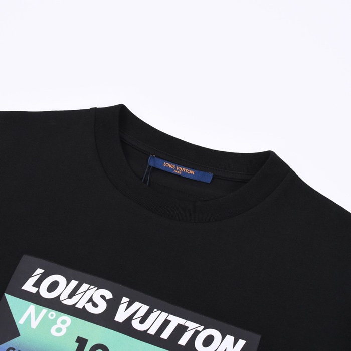 ルイヴィトンメンズブラッククルーネック半袖Tシャツu04855