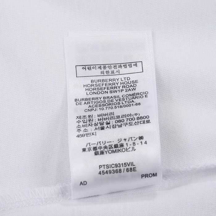 バーバリーメンズホワイトクルーネック半袖Tシャツr04339