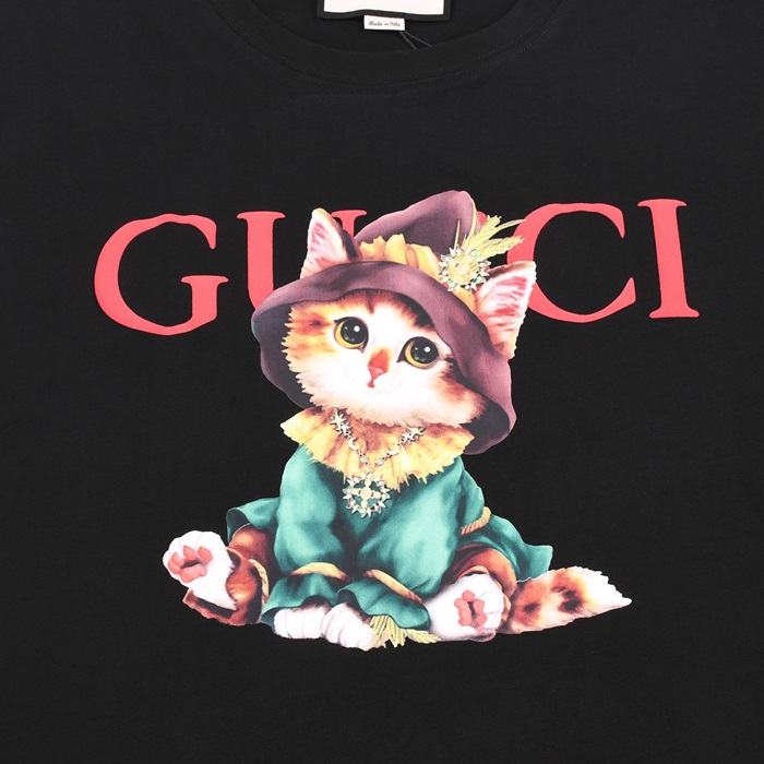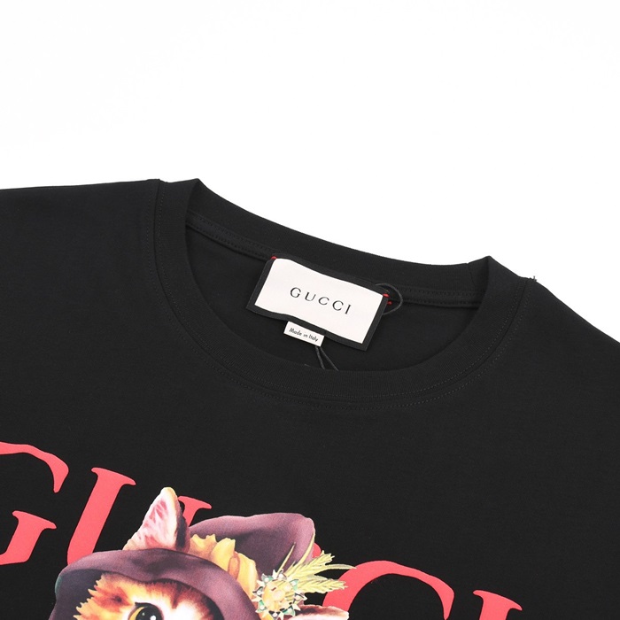 グッチメンズブラッククルーネック半袖Tシャツc04863
