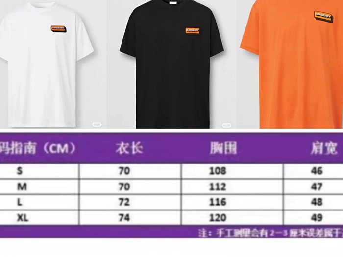 バーバリーメンズオレンジクルーネック半袖Tシャツr04342